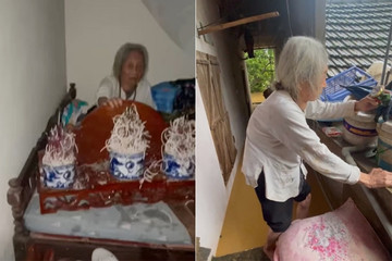 Cụ bà 91 tuổi ở Thái Nguyên ngồi canh bát hương chồng trong căn nhà ngập nặng
