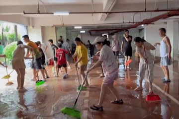 Sau 2 ngày sống trong cảnh mất điện, mất nước vì ngập nặng, bà Mai thở phào thấy nước rút dần, không gian sảnh chung cư sạch sẽ trở lại nhờ công sức dọn dẹp của hàng trăm...